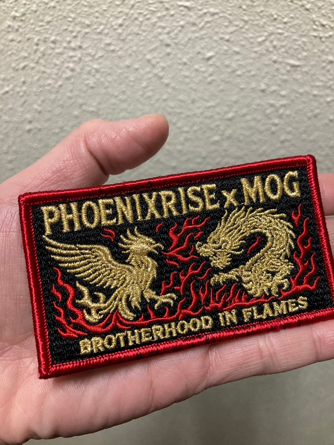 フェニックスライズの不死鳥とMOGの龍をデザインしたワッペンです。